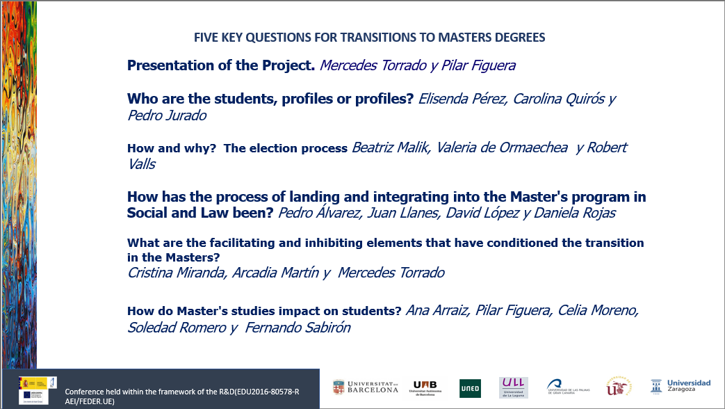 On December 14 and 16, 2020 took place the dissemination day of the main results obtained in the framework of the R&D project “Transitions and trajectories of access to master’s studies in the Spanish university: an analysis in the field of social sciences” (EDU2016-80578-R AEI/FEDER.UE).